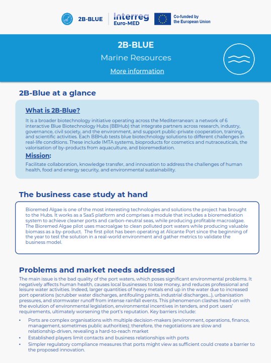 Poor water quality in ports is addressed in by an innovative pilot project developed by Bioremed Algae in collaboration with 2B-BLUE partners: University of Murcia (UMU) and the Marine Technology Centre (CTN).