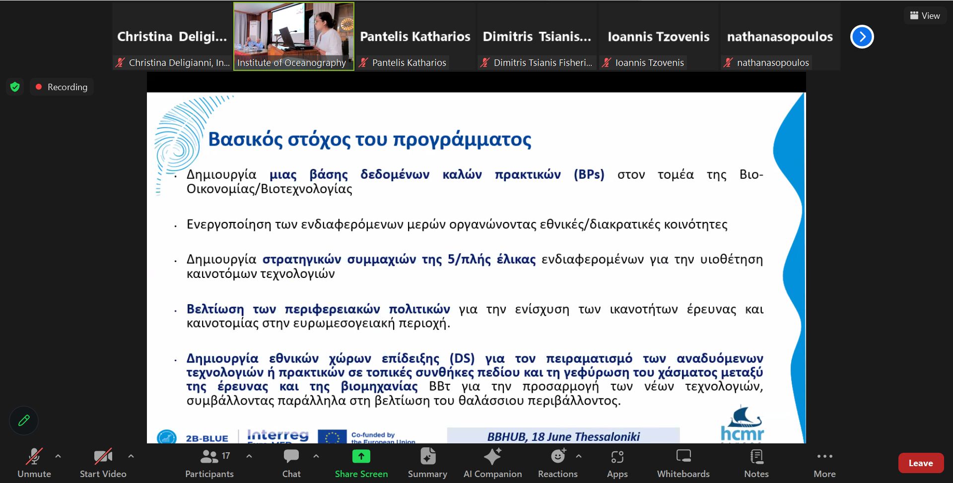 Society for Macedonian Studies, Thessaloniki, Greece, June 18, 2024 – The 2B-BLUE HB proudly hosted its inaugural event in the city of Thessaloniki, Greece, in collaboration with BlueMissionMed CSA under the EU Mission Restore our Oceans and Waters. This landmark event marked a significant stride towards embracing blue bioeconomy and biotechnology innovations to tackle marine pollution, heralding a new era of sustainable aquatic solutions.