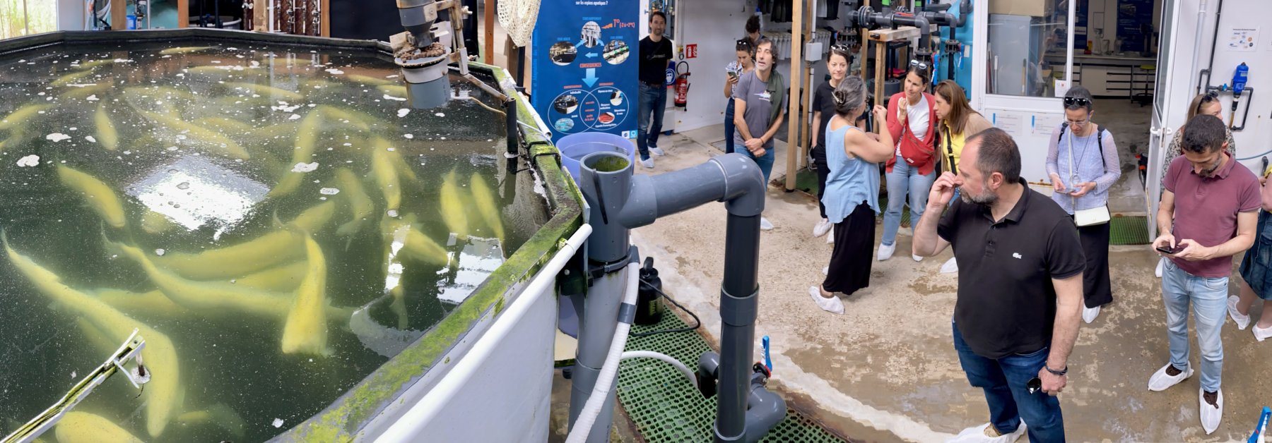 The visit continued with a tour of the PEMP facilities, focusing in particular on the larval rearing systems. These infrastructures, part of the European program Aquaexcel3.0 – AQUAculture infrastructures for EXCELlence in European fish research towards 2020 – are especially recognized for their controlled environments, which enable experimental research on the early life stages of marine species. The tour emphasized work related to species domestication, nutritional trials, and environmental impact assessments, underscoring Palavas’s strategic role in the development of Mediterranean aquaculture and marine biotechnology.