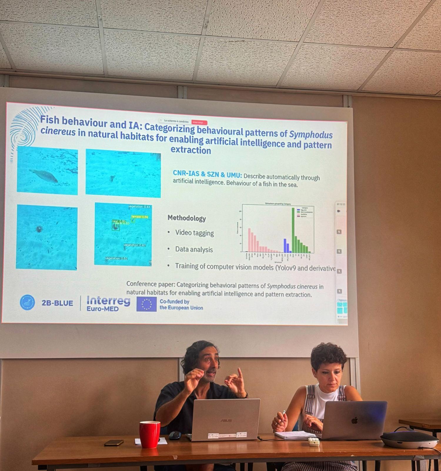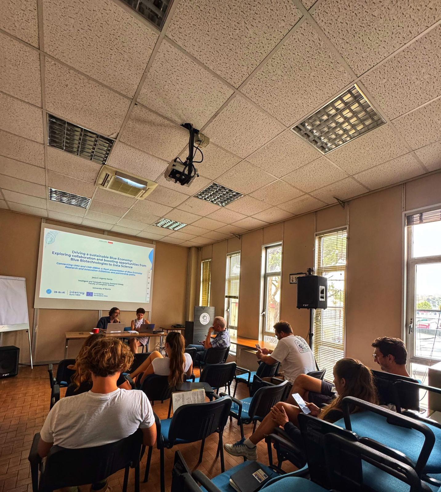 During UMU’s visit to CNR-IRBIM, both institutions took a significant step forward in strengthening their BBHubs collaboration under the Interreg Euro-MED 2B-BLUE project. In this sense, main objective of the stay was to define a collaboration plan among the Demonstration Sites (DS) of Spain and Italy. Throughout the visit, several joint activities were carried out, including strategic meetings with CNR researchers and technical seminars to exchange expertise between both institutions.