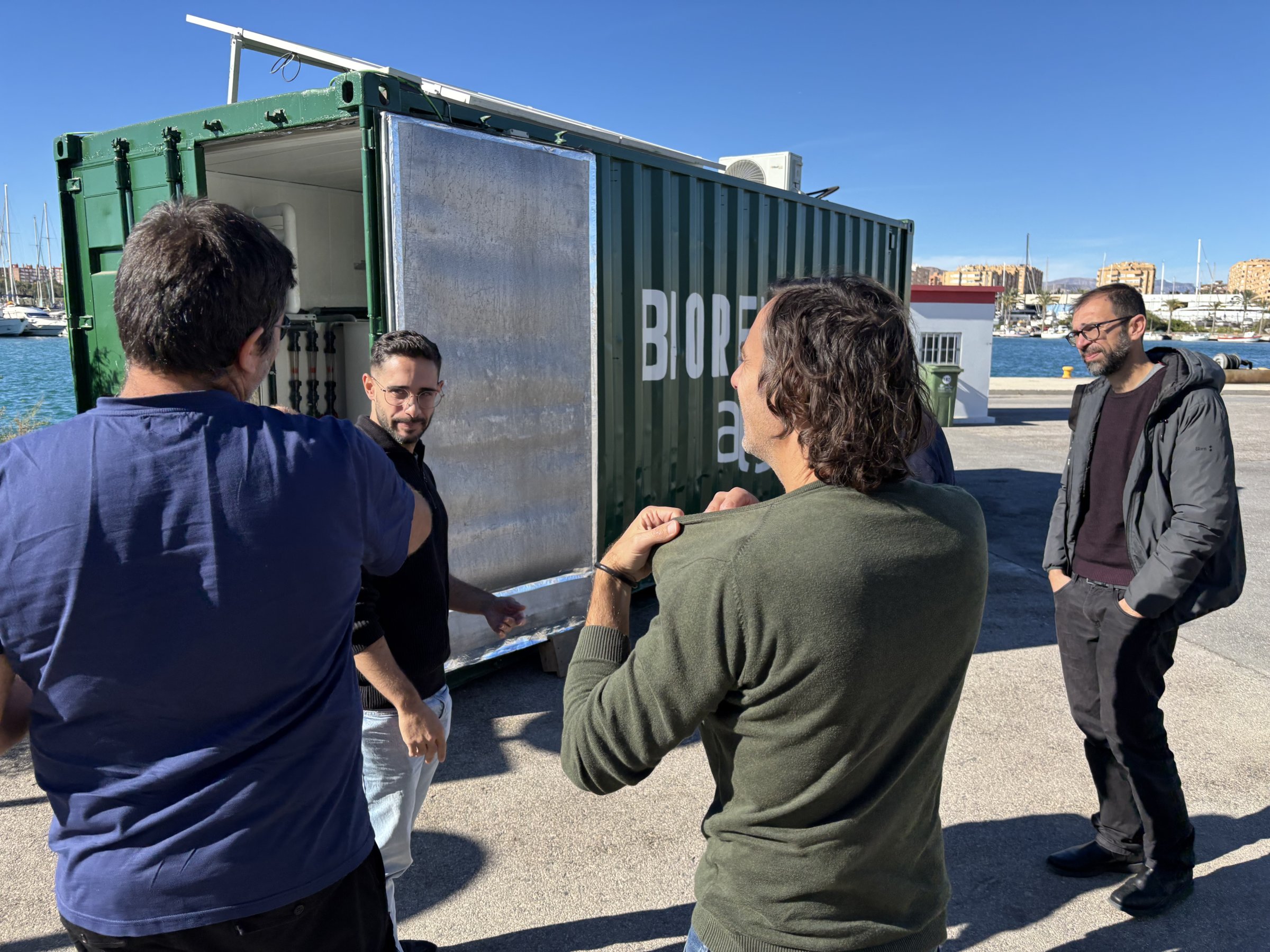 On 25 November, the University of Murcia, together with Mediterranean Algae, hosted a technical visit to the Spanish Demonstration Site located at the fishing deck of the Port of Alicante as part of the 2B-BLUE Project’s Knowledge Transferring framework. Representatives from ENEA (Italy), HCMR (Greece) and DIAG4ZOO (France) participated in the event.