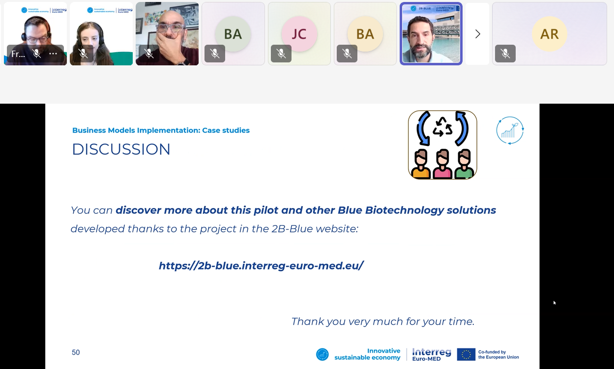 On December 10, 2B-BLUE took part in the online training seminar “Implementing Circular Economy Business Models: Real Case Studies,” organized by the Innovative Sustainable Economy Mission of the Interreg Euro-MED Programme.