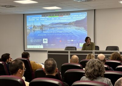 The University of Murcia, together with the 2B‑BLUE team, successfully hosted the XII Conference on the Marine and Coastal Environment in the Region of Murcia and the Valencian Community, bringing together around 100 Mediterranean actors. Participants included representatives from public administrations, universities, research centers, NGOs, and civil society, all sharing a common commitment to advancing sustainable solutions for the Mediterranean.